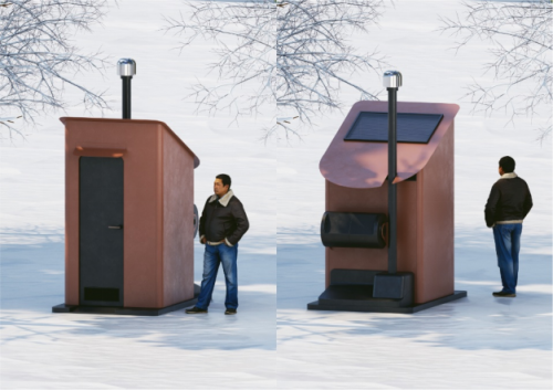 基于这样的初心和洞察,团队设计了Pureco免水冲生态厕所:房体顶部利用光伏玻璃采能采光;处理系统使用双仓嵌套式设计,粪便与尿液分别置于内仓与外仓,中间为填充沙粒与加热支撑架,可实现冬季的尿液化冻与粪便发酵补温,从而实现低成本的高效无害化、减量化处理;内置的轴流风机与负压风道可最大限度减少异味返流。