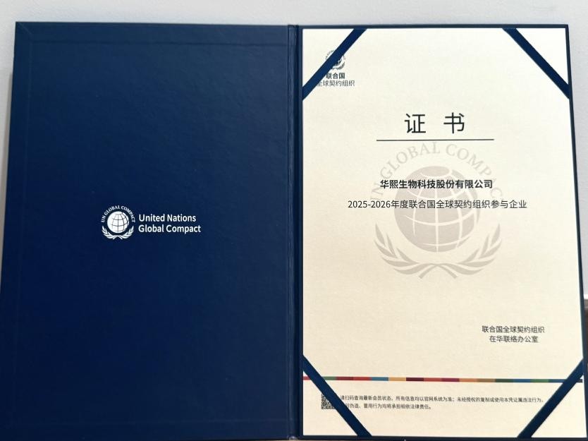 在年会现场,联合国全球契约组织驻华办公室发布《2024年年报》并进行2025年度会员工作总结,同时举行会员证书颁发仪式。华熙生物作为会员企业之一,在现场获得由联合国全球契约组织颁发的”2025-2026年度联合国全球契约组织参与企业”的证书。这一荣誉从侧面印证了公司在可持续发展治理体系、透明披露与责任实践方面取得的阶段性成果,并获得了国际机构的正式认可。