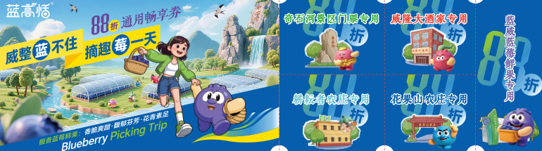 决战莓后王:敢不敢挑战基地的“蓝莓王”?只要你摘到的蓝莓比现场展示的“蓝莓王”更大,即可享受摘果8折优惠,用实力解锁甜蜜福利!即使挑战失败也无需遗憾,能免费get马年定制“布捣莓”贴纸,可爱值拉满,更具纪念意义!