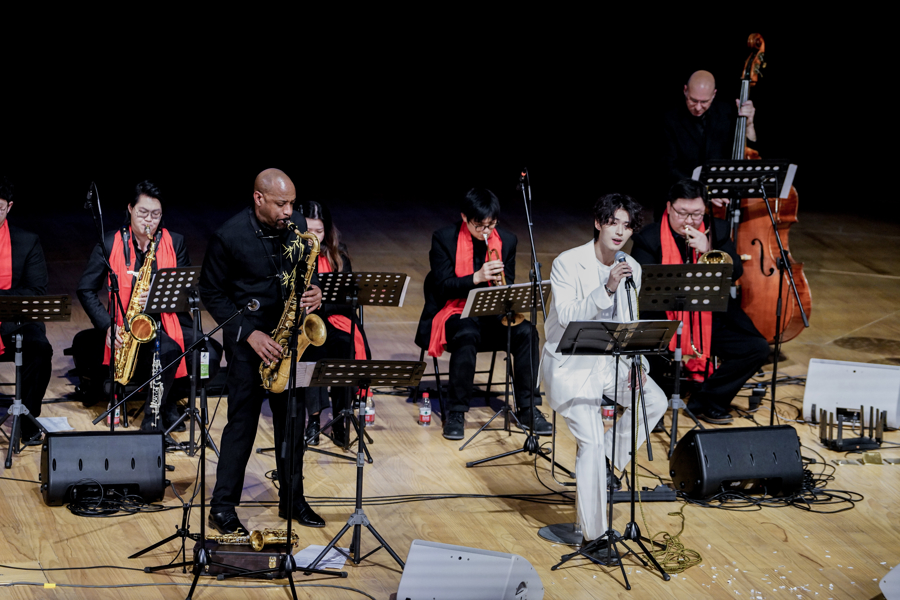 3月1日晚,观众们冒雨赶到上海长滩音乐厅,看林肯爵士上海大乐队、二胡演奏家蔡秉汝、人气音乐剧演员郑艺彬如何玩出一场跨界音乐实验。
