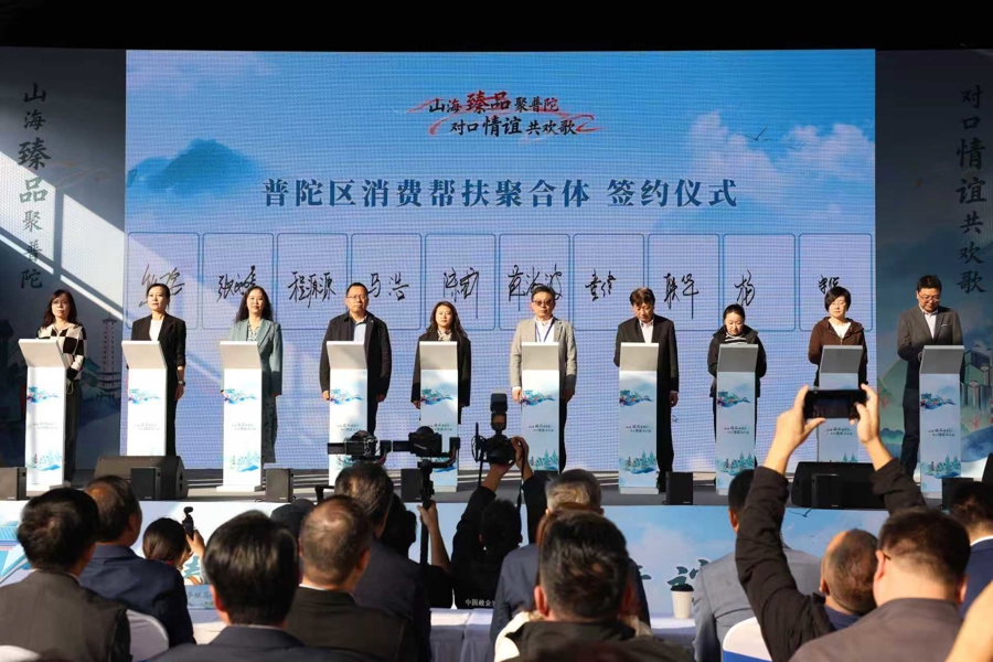 10月24日,“山海臻品聚普陀 对口情谊共欢歌”2025年普陀区对口帮扶地区特色产品展示展销和文旅推介活动在上海环球港启动。现场共设置7大主题展区、50余个标准展位,参展的各类特色商品数量较去年增长超过30%。